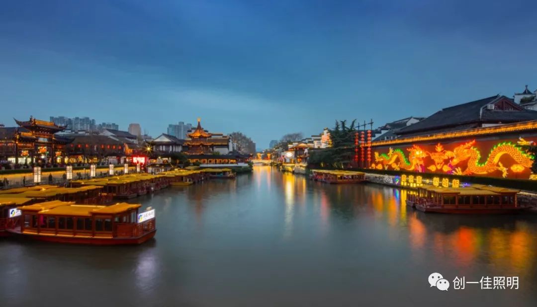 十里秦淮游船亮化提升项目,是灯光与实景的完美融合,灯光中倒映出秦淮的美,秦淮河又衬托出光的韵味,仿佛一曲断肠情愫,给游客以渐进、生动、精彩,跌宕起伏的体验与记忆。